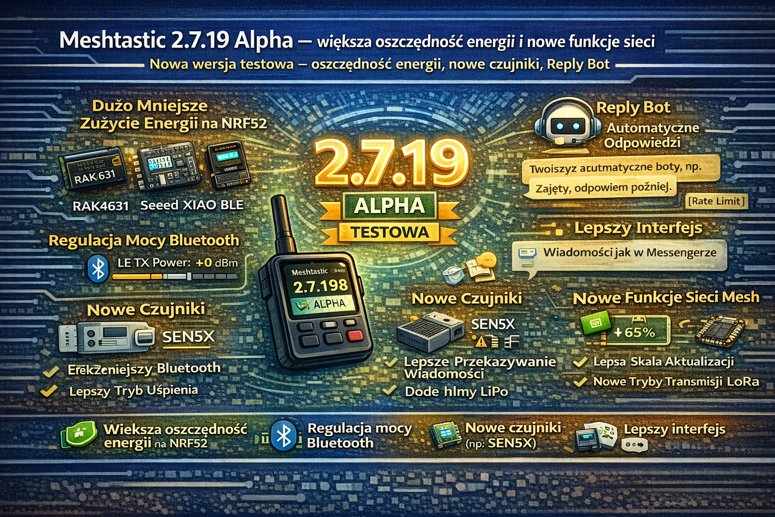 Pojawiła się kolejna testowa wersja oprogramowania Meshtastic – 2.7.19 Alpha. Aktualizacja skupia się głównie na trzech rzeczach: