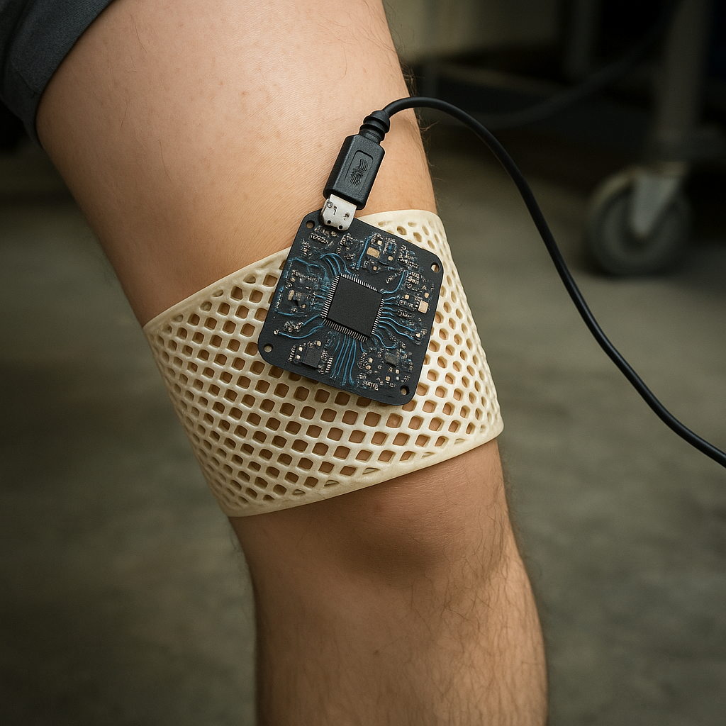 Urządzenie opisane w badaniu opublikowanym 20 grudnia 2025 r. w Nature Communications ma postać miękkiego, siatkowego rękawa noszonego wokół dolnej części uda. Około dwóch cali szeroka, drukowana w 3D konstrukcja wyłożona jest drobnymi czujnikami i — jak podkreślają autorzy — została zaprojektowana tak, by być „niewidoczna” dla użytkownika. Rękaw mierzy przyspieszenia nogi oraz parametry chodu: symetrię kroku i zmienność kroku, które są istotnymi wskaźnikami frailty.